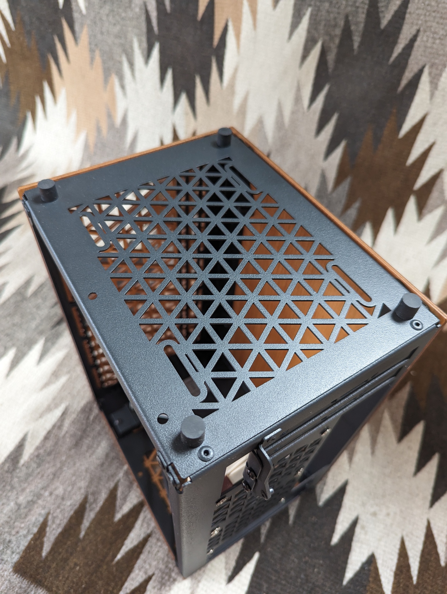 a 10L small form factor computer with fetching laser-cut wood panels. Key